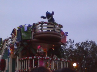 スティッチもミッキーの後で柵に二つ折りになってもたれながらこっちを見てくれたり